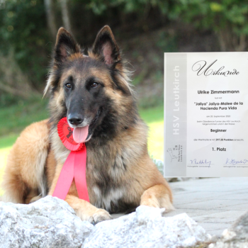 | Prüfungen: | BH|VT 11.07.2020 FCI-OBE 3 22.06.2024 (V 278 P. | Pl. 1/5) Rally-OBE BG 29.09.2024 (V 90 P. | Pl. 4/15) Rally-OBE Klasse 2 04.10.2025 (V 95 P. | Pl. 2/9) |